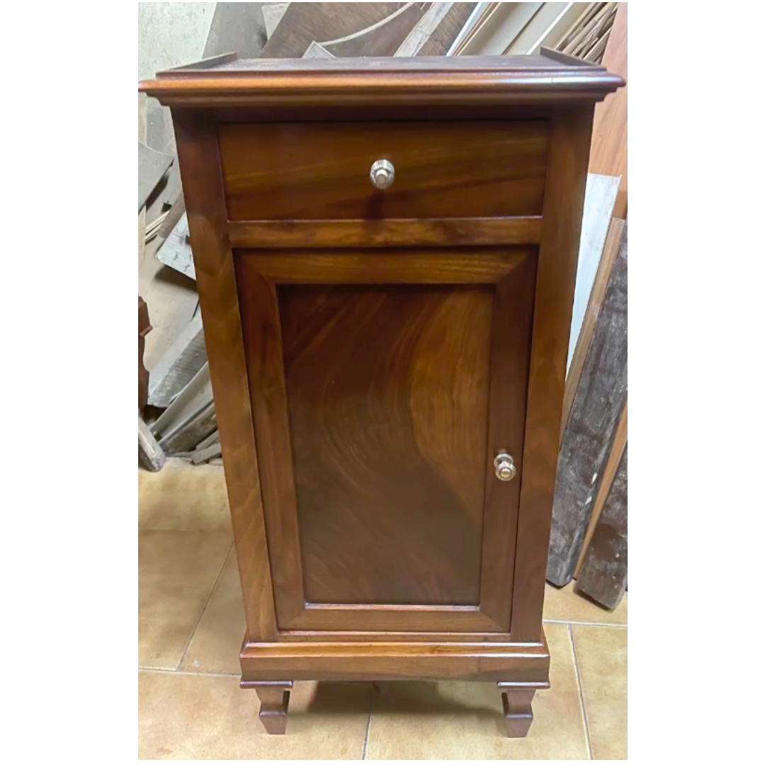 Con amorevole cura e rispetto per la sua storia, ci siamo dedicati al restauro di un’affascinante coppia di comodini in noce risalenti al XX secolo, due pietre miliari dell’artigianato di un’epoca passata.